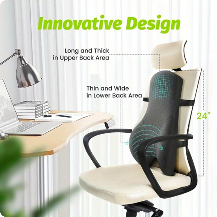 How does the Memory Foam Lumbar Support Cushion help with back pain?